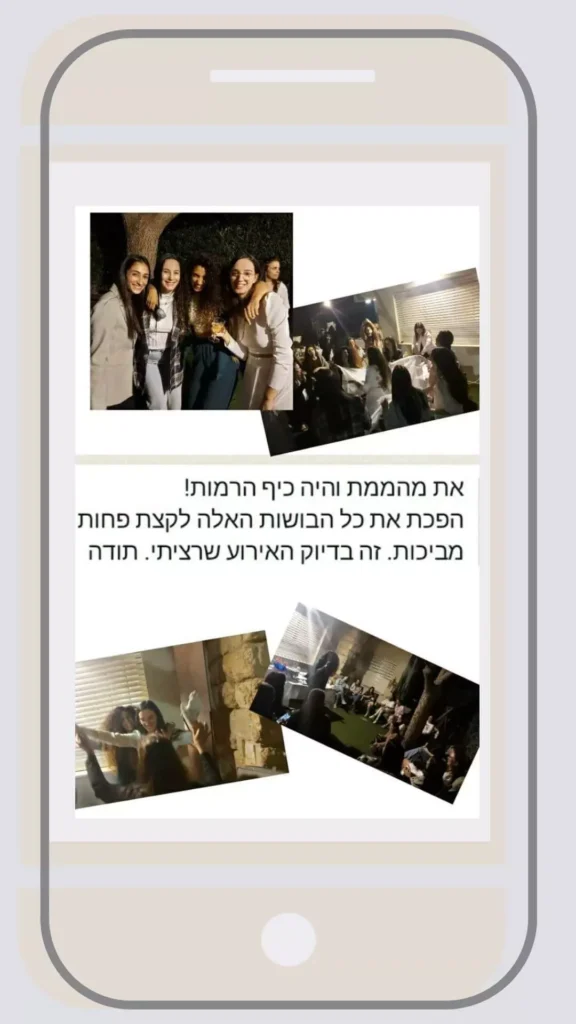 ובמהלך האירוע את תקלטי שאף אחת לא מצלמת אף אחת לא מעלה לסטורי ואת תתבאסי שבכלל עשית את כל זה.