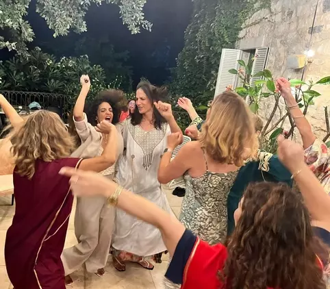 אני מביאה איתי צעיפים צבעוניים מרשרשים בסגנון רקדניות בטן שאפשר לקשור על המותן, לכלה בלבן ולשאר המשתתפות צבעוני ומפה נשאר לנו רק לעוף באויר.